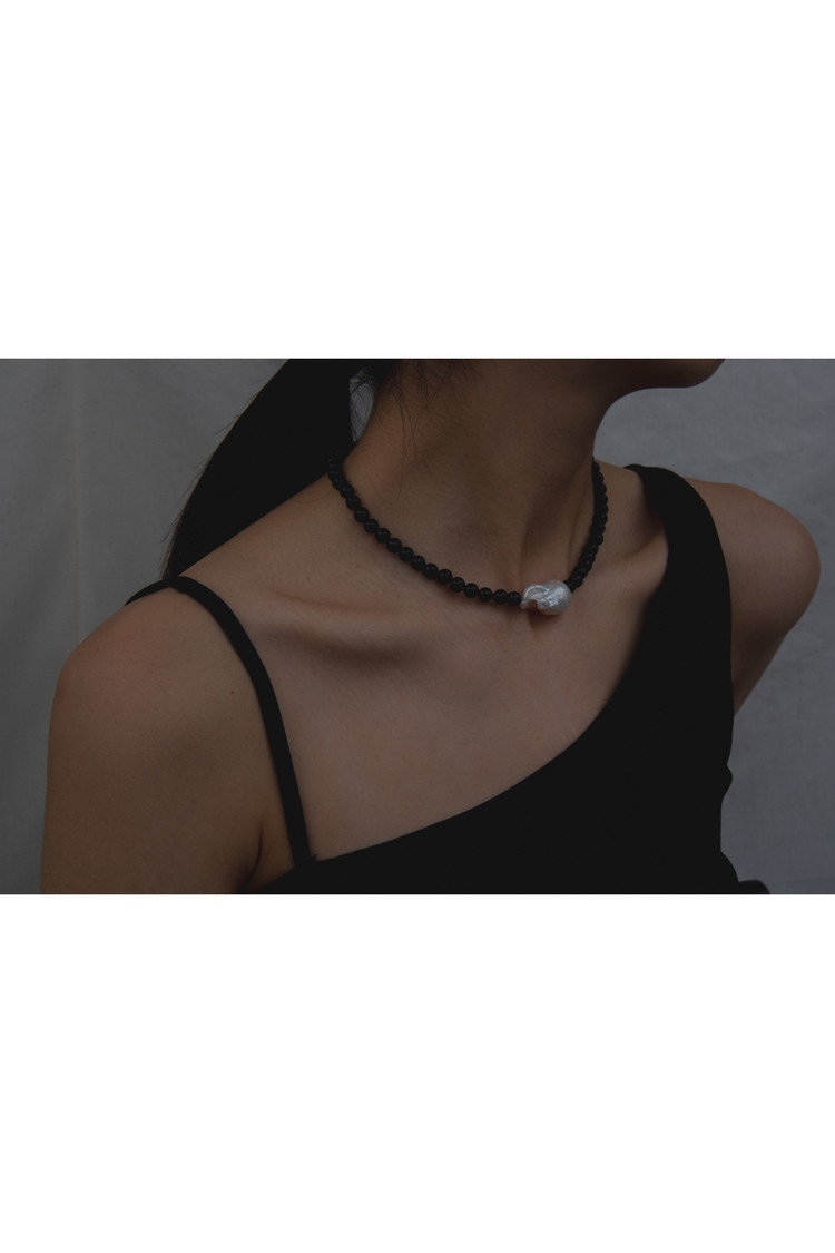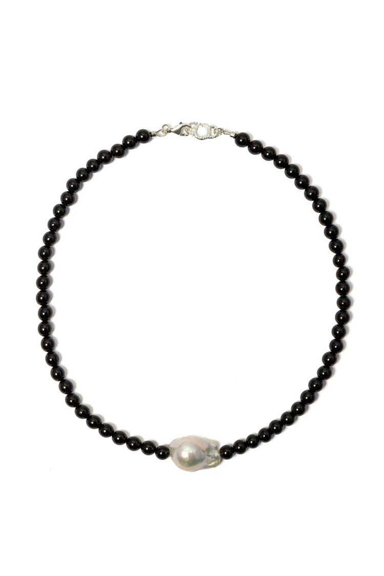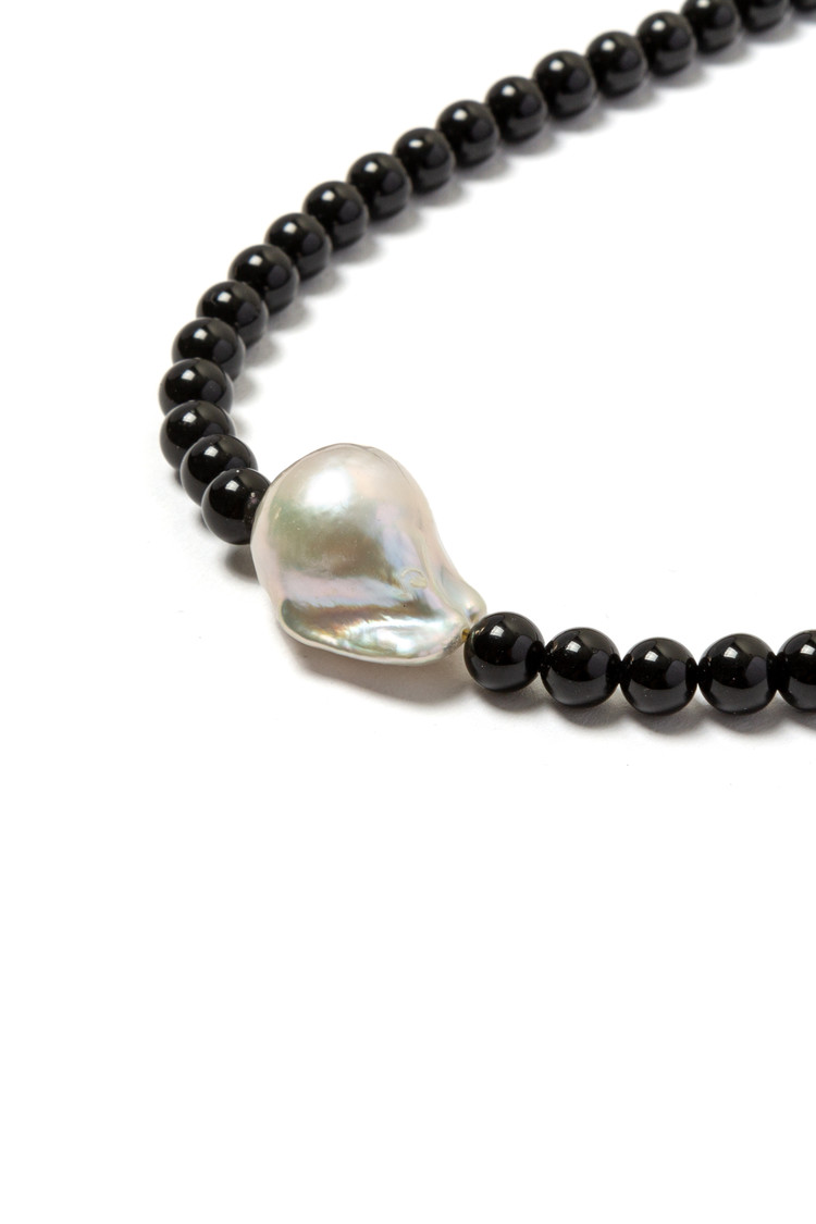 • 비정형 형태의 바로크 진주와 오닉스의 조화로움이 돋보이며 자체 개발 클로징이 특징인 넥클리스