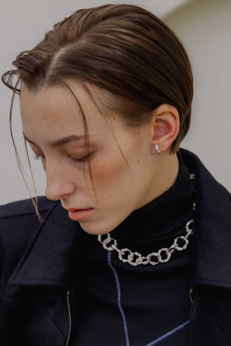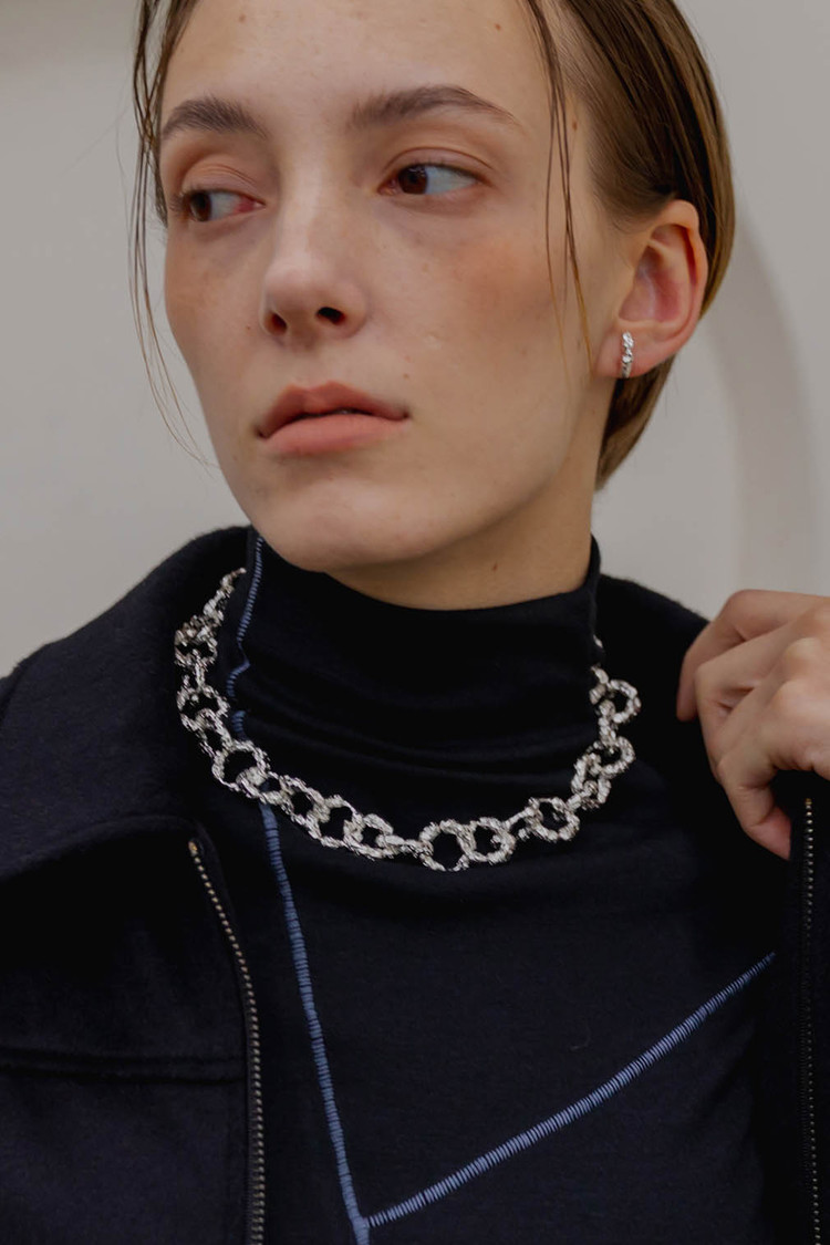 • 불규칙하지만 균형감 있는 형태의 루프가 서로 교차하여 풍성한 볼륨을 만들어내는 넥클리스
